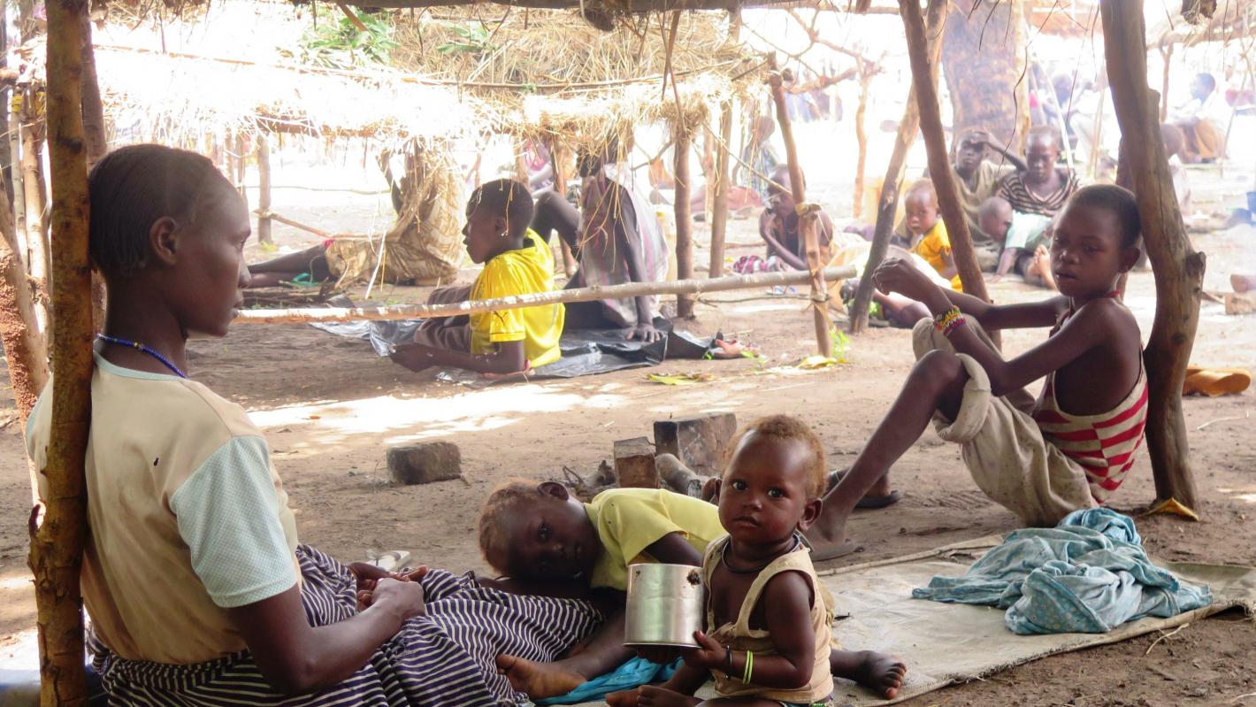 Thirty-five year old Mary Samson and her seven children are among thousands of civilians who fled to Deim Zubeir, in Western South Sudan, after fighting broke out in nearby Raja in April last year. They live in the compound of the Catholic Church in a makeshift shelter made from dried grass collected from the area.
