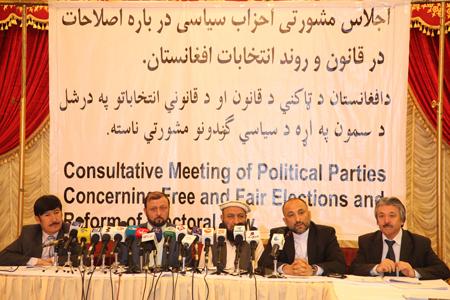 KABUL- Representatives of major Afghan political parties mulled yesterday establishment of an inter-party consultation mechanism that would serve in the future as a common forum to discuss elections, electoral law and…
