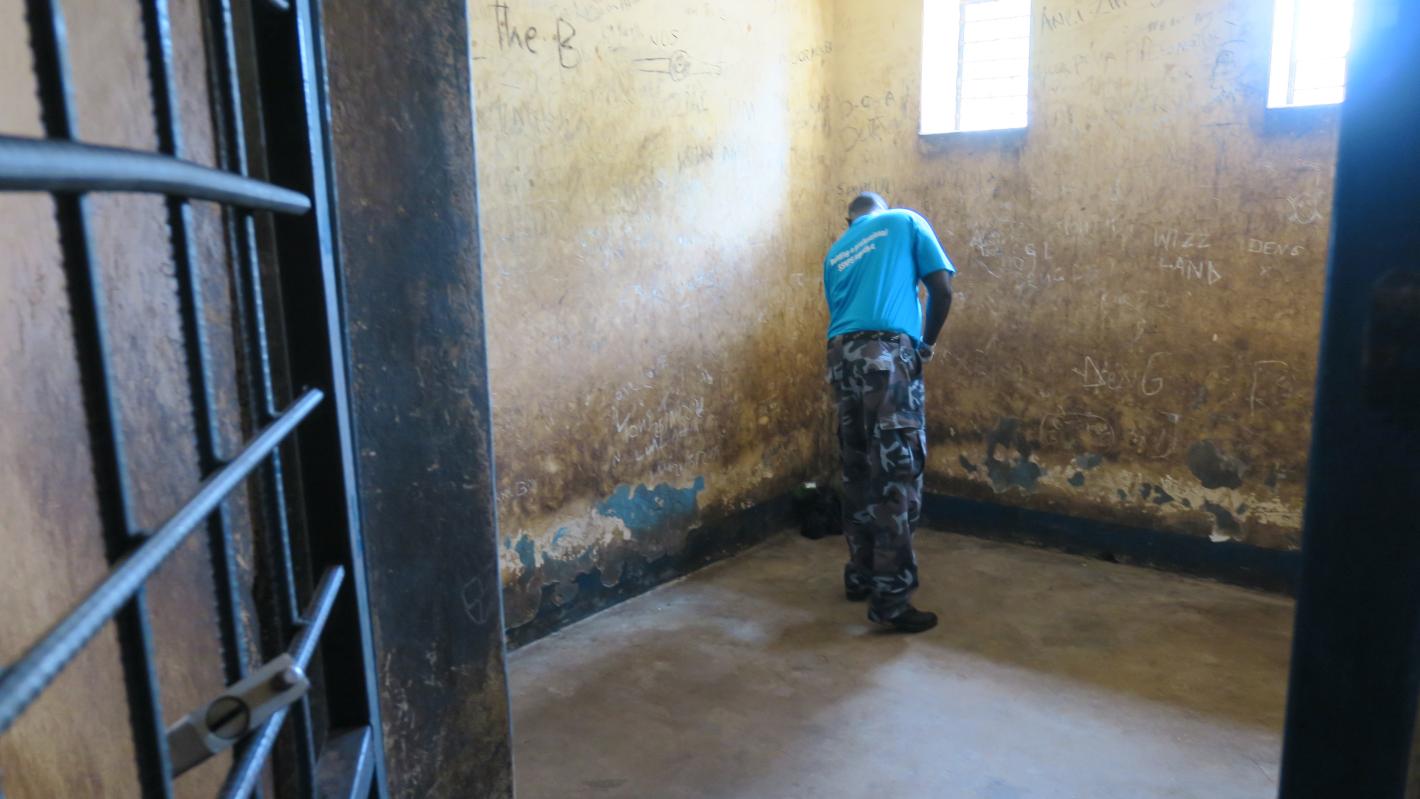 During the dry season, these two congested rooms become very hot. The limited space and high number of detainees, plus the long hiatus between when a suspect is apprehended and is finally brought to court to face charges, make things worse.