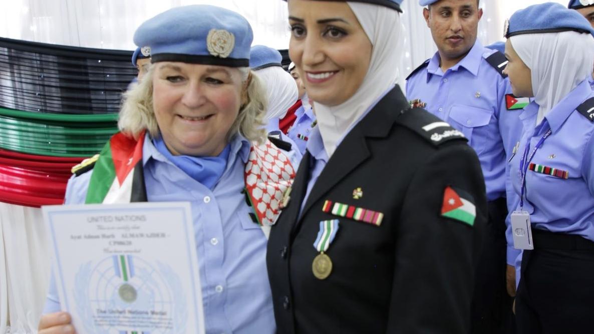 Ayat did not receive it to mark International Women’s Day. She is one of the 50 Jordanian police officers, half of them women, who have just been awarded medals for a job well done serving with the peacekeeping mission. Together, they have spent a year building the capacity of South Sudanese police colleagues, patrolling, and doing their part to uphold the rule of law.