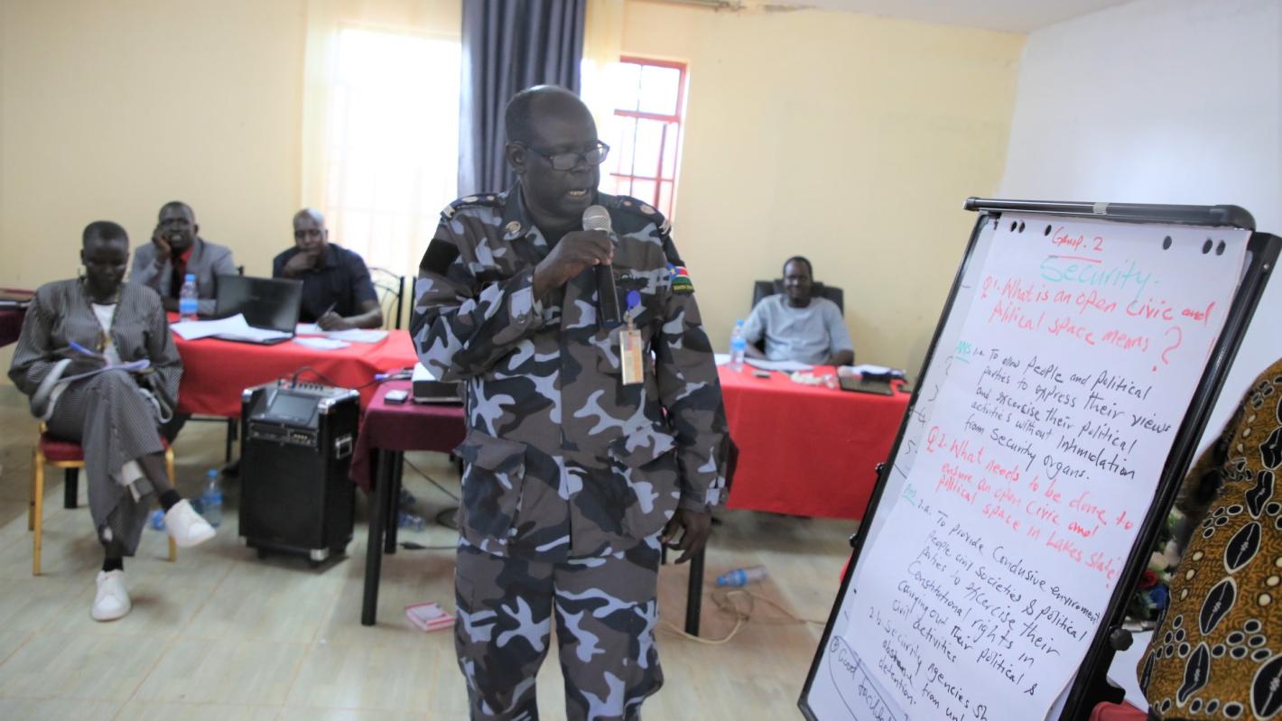 Intense and detailed discussions by participants focused on the roles and responsibilities of the National Elections Commission (NEC); the National Constitutional Review Commission (NCRC) and the Political Parties Council (PPC). Stakeholders also sought updates on the status of the Tumaini Peace Initiative, currently ongoing in Nairobi, capital of neighboring Kenya, where non-signatories to the 2018 peace deal are engaged in finding a consensus-based way forward for South Sudan to complete its long overdue democratic transition while incorporating viewpoints across the political spectrum.