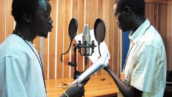 Radio Miraya assists Giant Media Theatre Company spread land tenure messages. Photo: UNMISS/Beatrice Mategwa. Click for larger photo.