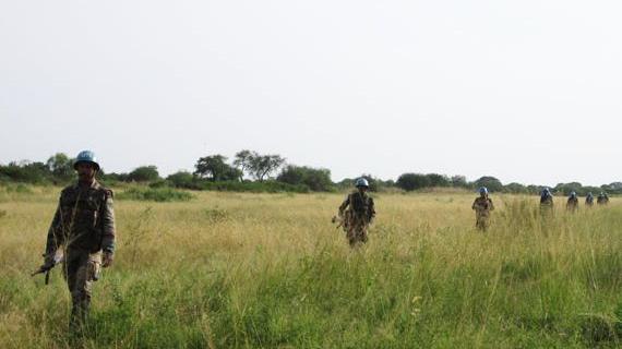 Members of the UNMISS Indian battalion patrolling in Jonglei State. Peacekeepers from 62 contributing countries perform regular patrols to ensure security in South Sudan's 10 states. The current UNMISS military component consists of around 6,500 personnel, including troops and Military Liaison Officers.Photo: UNMISS/Satnam Singh. Click for larger photo.