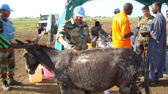 Protective and administrative support for the veterinary camp, including transport and security, was provided by the Indian peacekeeping battalion based in Renk. The peacekeepers hope to be able to continue to provide veterinary relief to farmers in the region in future.