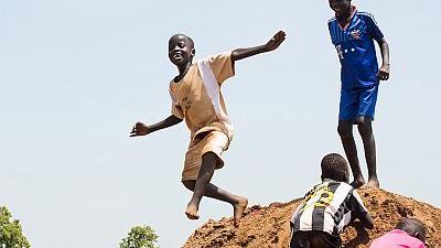Children playing in new protection site next to UN House in Juba. About 100 people move here daily from Tomping base. Photo: UNMISS/John Mcilwaine