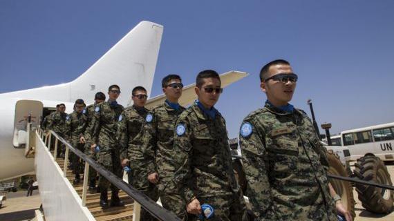 Republic of Korea Engineering Company arriving at Juba International Airport to join UNMISS on 2 April. The 190 peacekeepers will be deployed to Bor, Jonglei, to carry out construction activities in the state. Photo: UNMISS/Martine Perret. Click for larger image.