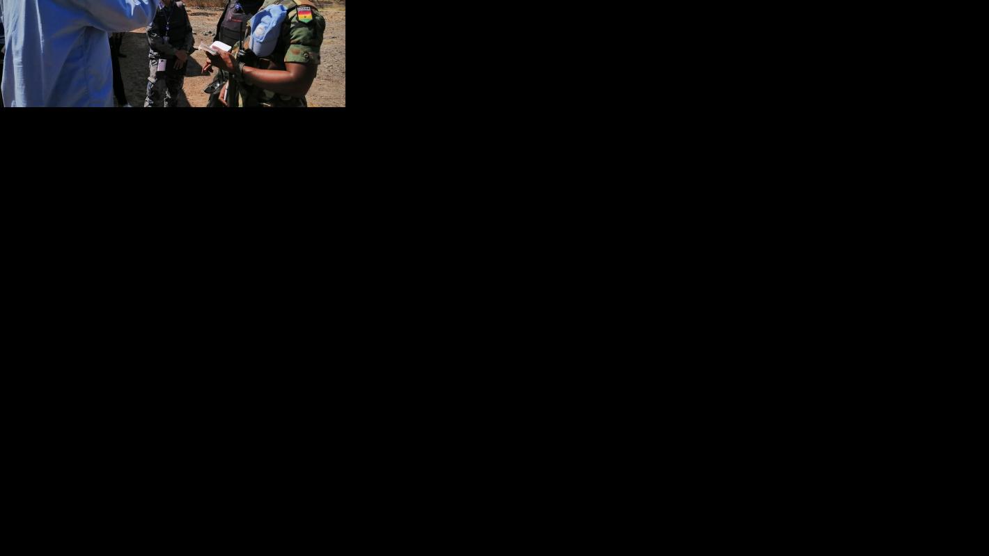 The peacekeepers from Ghana sprung into action, with Staff Sergeant Abigail Bredzei, a member of the patrol and the battalion’s medical attendant, dressing the patient’s injuries, administering a pain reliever and stabilizing infusions, while others from her team liaised with UNMISS headquarters in Juba to arrange an urgent evacuation for the wounded man.