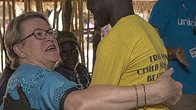 HomeUNMISS NewsSRSG Ellen Loej meets former child soldiers in Pibor SRSG Ellen Loej meets former child soldiers in Pibor 29 April 2015UNMISS Chief Ellen Loej meeting a former child soldier in Pibor on 28 April 2015. Photo: UNMISS/Isaac BillyShare