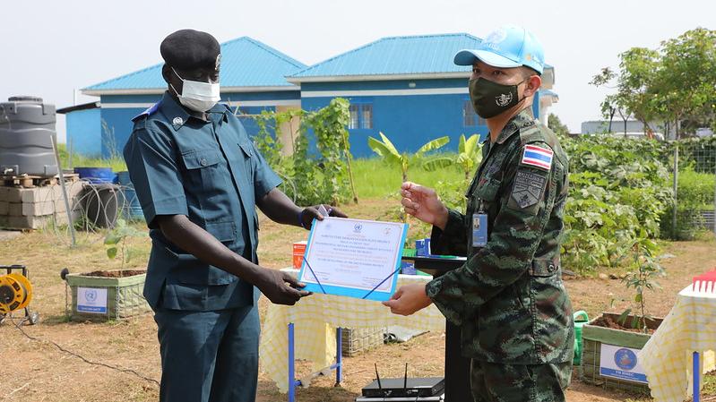 Thai engineers serving with UNMISS have conducted two vocational trainings with members of the displaced community in Juba, South Sudan, to train them in sustainable agricultural practices. The project has been handed over to the South Sudan National Police Service who will ensure that such capacity-building continues to take place. Photo by Nektarios Markogiannis/UNMISS.