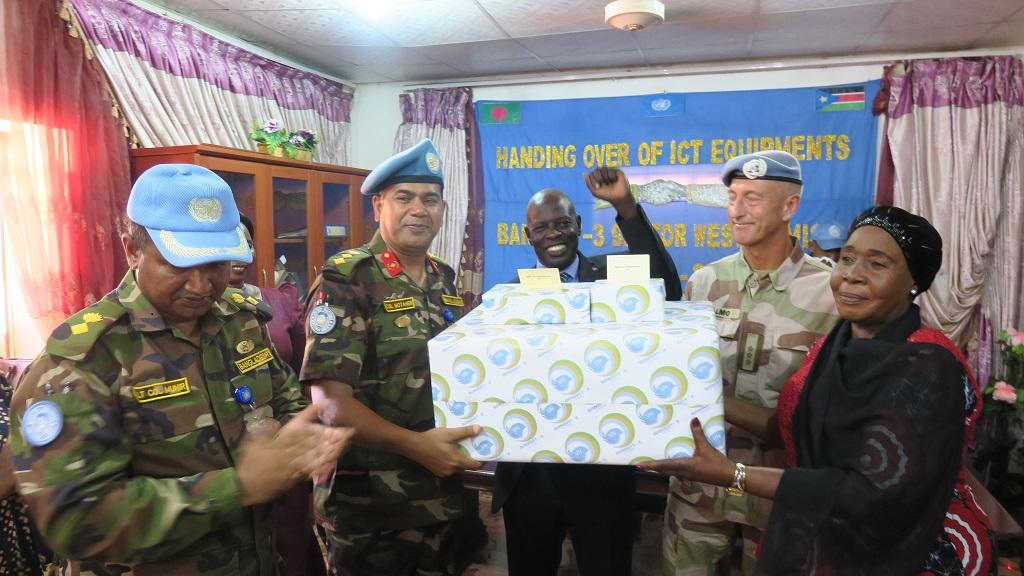 Bangladeshi peacekeepers serving with the United Nations Mission in South Sudan in Wau are reigning in the Christmas spirit early this year with a donation of brand new electronics presented to the South Sudan Broadcasting Corporation (SSBC) this week.