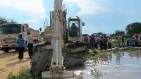 Using excavators, the UNMISS South Korean engineering contingent is now constructing water channels and carrying mounds of soil along main roads in Bor town to control the floods.