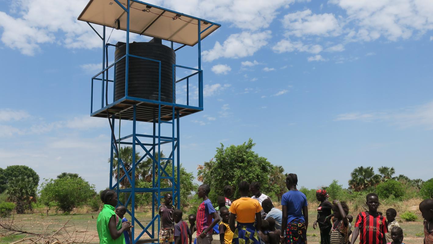 In a bid to mitigate longstanding source of conflict, UNMISS, as part of its Quick Impact Projects programme, drills a solar-powered borehole in Pau-Adhot. Photo by Emmanuel Kele/UNMISS