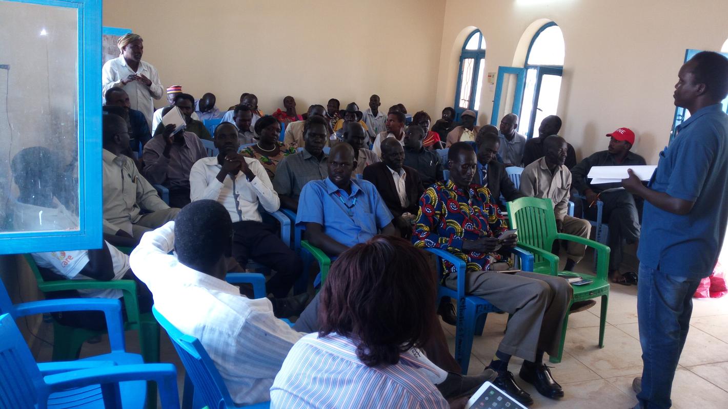 Representatives from communities in the Pariang area in an UNMISS Civil Affairs dialogue forum with members of nomadic groups from Sudan.
