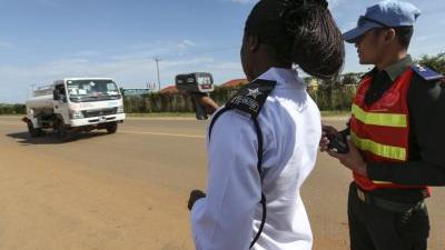 Monitoring speed in the week-long Road Safety Awareness Campaign launched by UNMISS and the South Sudan National Police Service (SSNPS) in Juba on 4 November. Photo: UNMISS/Martine Perret