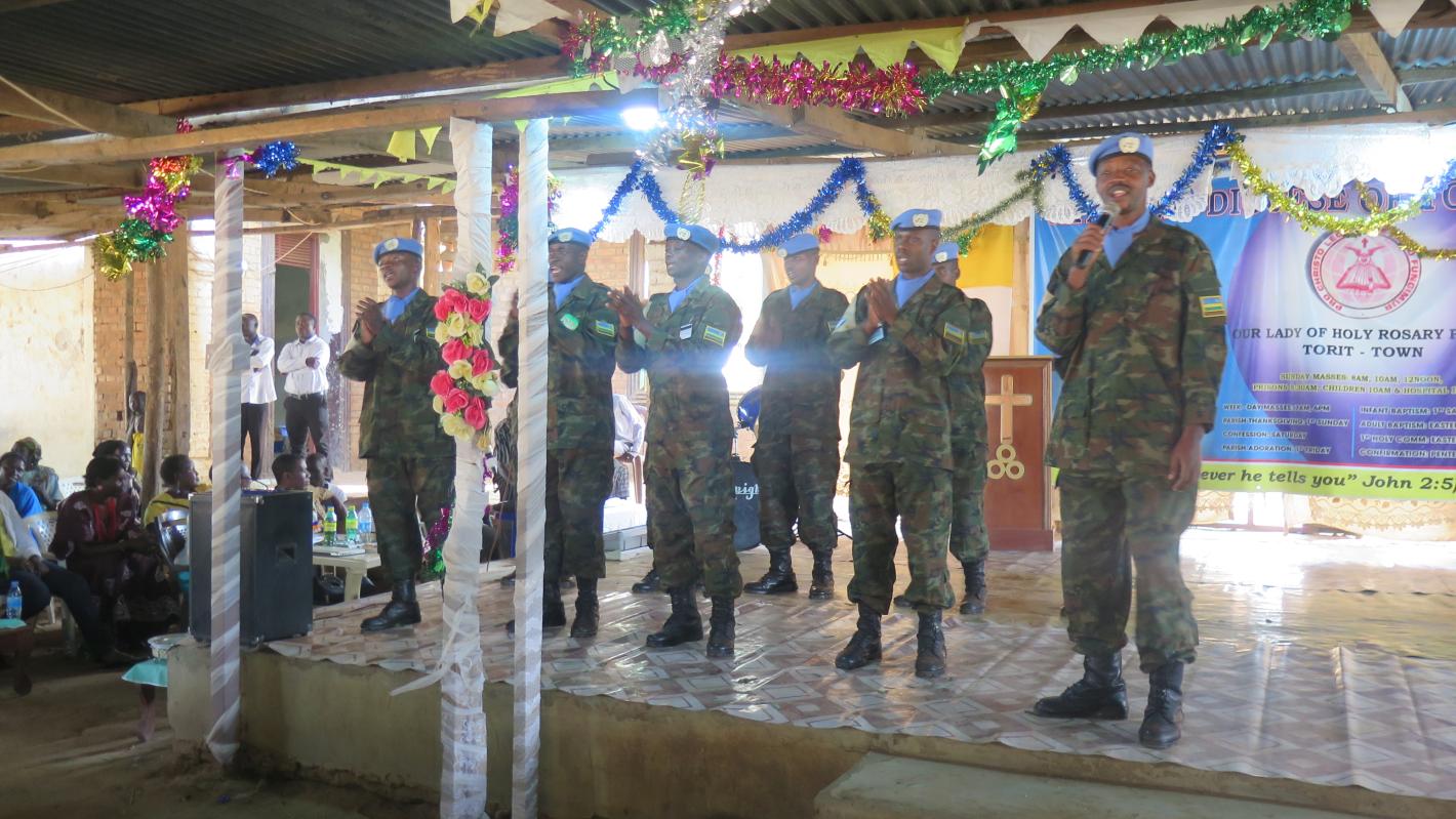 UNMISS Rwandan troops participated in the “Christmas Carols for Peace”, an inter-faith group event organized by the Catholic Diocese of Torit and the Inter Church Committee at Our Lady of Holy Rosary Catholic Parish. The occasion brought hundreds of people together.