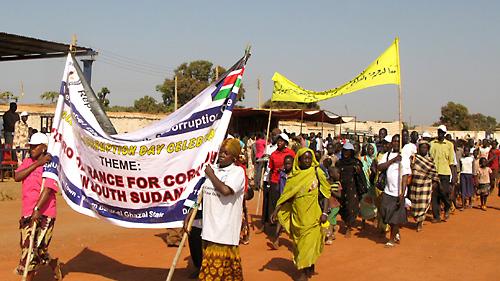 9 December 2011 – Vowing to fight graft and its drain on development funds, citizens in the Western Bahr El-Ghazal State capital of Wau marched from Peace Square to Isaac Stadium today to mark Global Anti-corruption Day.