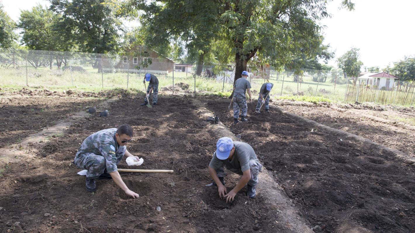 The UNMISS peacekeepers in the photo, taken in Rajaf in September 2015, did NOT participate in the WFP and World Vision training on basic urban farming.
