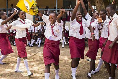 Juba Girls Secondary School girls dancing at event held as part of 2014 nation-wide campaign by government, UNMISs and partners to prevent sexual exploitation and abuse. Photo: UNMISS/ JC McIlwaine