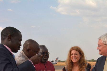 Under-Secretary-General for Peacekeeping Operations Hervé Ladsous and Special Representative of the Secretary-General Hilde F. Johnson at Juba International Airport on 2 February. Photo: UNMISS/Shantal Persaud
