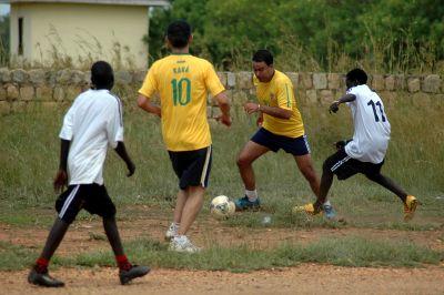 UNMISS Brazilian, Danish, German, Uruguayan and Romanian military officers playing football with South Sudanese Young Stars Football team in Juba on 2 November. Organized to promote cultural exchange, the game was won by the…