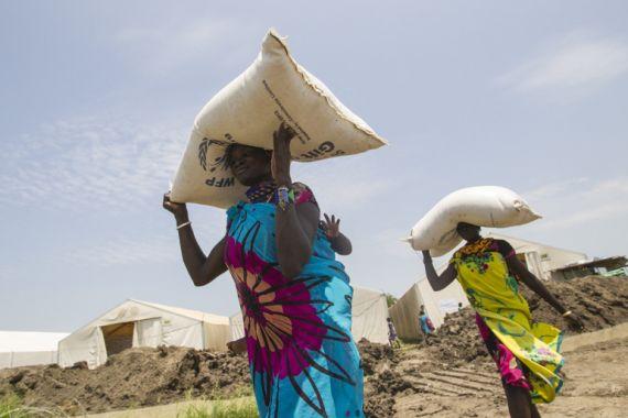 Residents of Pibor, Jonglei State, collecting food from World Food Programme (WFP) distribution point. The agency launched an operation this week to provide food to tens of thousands of people who had fled violence in the…
