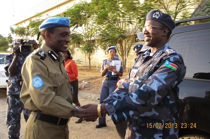 15 February 2013 – Familiarizing himself with UN Police work and achievements, newly appointed South Sudan National Police Services Inspector General Pieng Kuol met with UNMISS Police Commissioner Fred Yiga today at UN House…