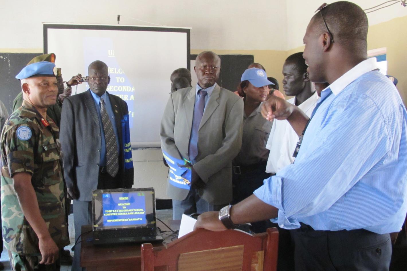28 February 2012 - Striving to fill a technology gap and encourage reading, UNMISS handed over a computer centre and library today to a school in the Eastern Equatoria State capital Torit. The centre presented to Torit…