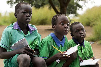 Children arriving at refugee settlement in Makpandu, Western Equatoria State during relocation of over 100 foreign nationals from UNMISS protection site in Juba. Photo: UNMISS/Isaac Billy