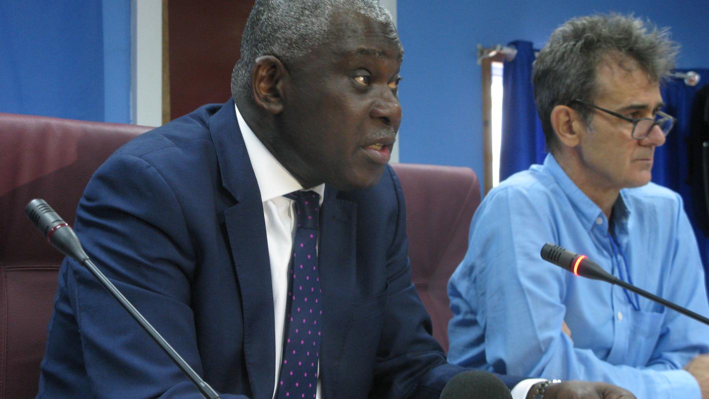 Eugene Owusu, Deputy Special Representative of the Secretary-General and UN Resident and Humanitarian Coordinator in South Sudan, at today's press briefing in Juba.